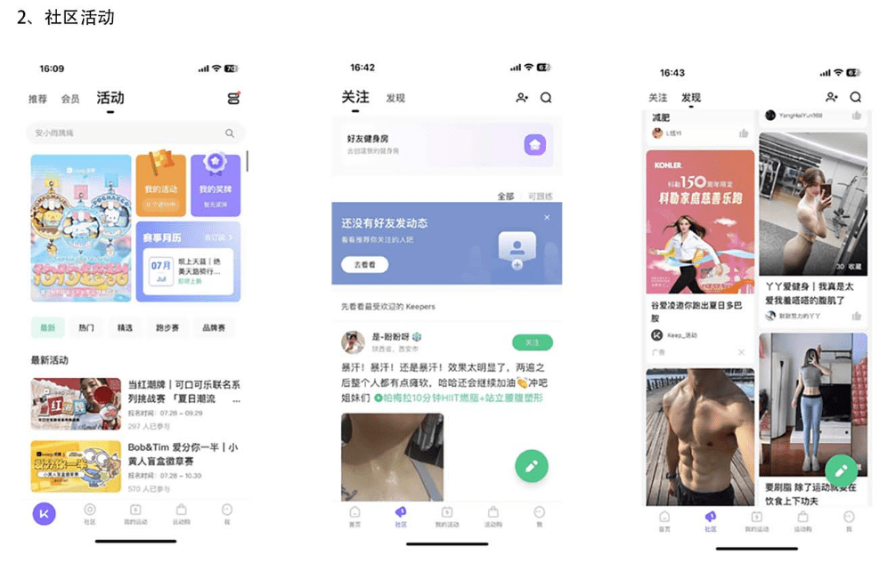 社区活动-关注:用户可以关注其他一些用户动态,也可以自己发表一些动态,例如健康分享,饮食分享等。