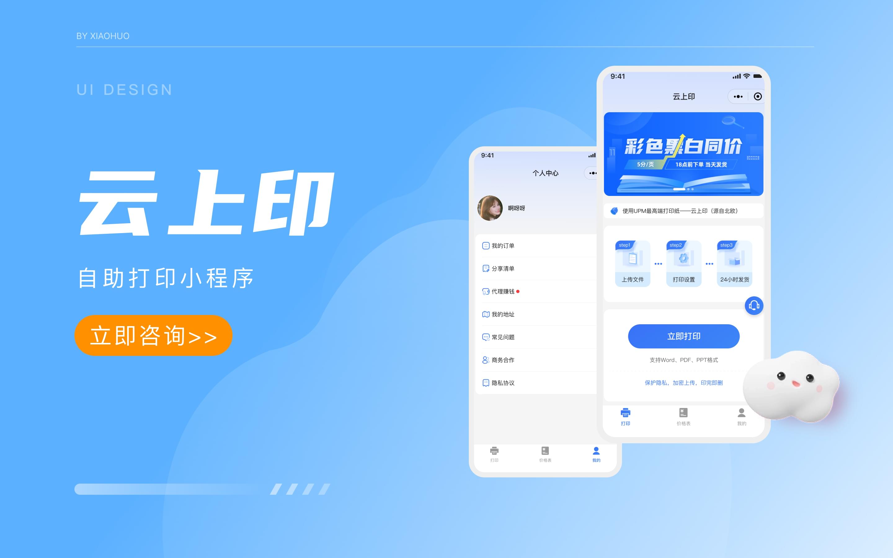 小火科技公司为客户定制开发的云打印小程序,是一款集文件上传、印刷品种选择、设计编辑和快递配送服务于一体的线上打印服务平台。这款小程序的推出,满足了市场对于便捷、高效打印服务的需求,为用户提供了极大的便利。
