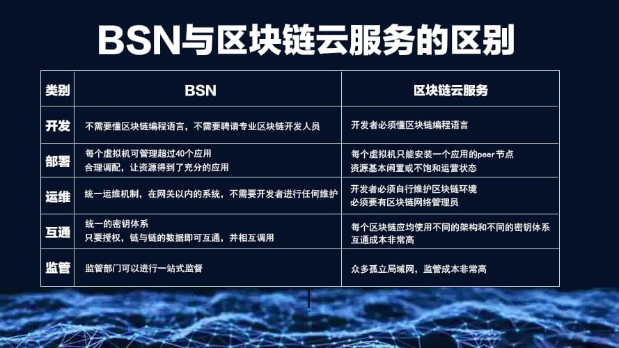 1. BSN是全球首个跨云、跨框架、跨平台的区块链云服务平台,可以极大地降低区块链应用的开发和运维成本;
